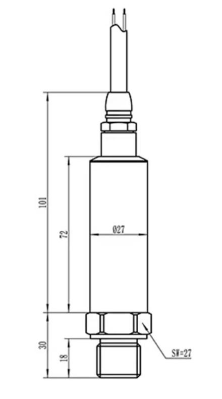 ②压力报警输出 2芯 1+/2- 压力报警24V高电平输出(≤100mA);